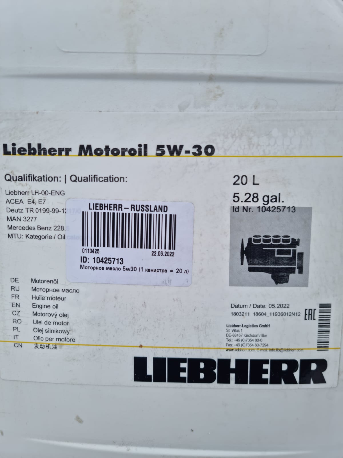 Гидравлическое масло для техники Liebherr