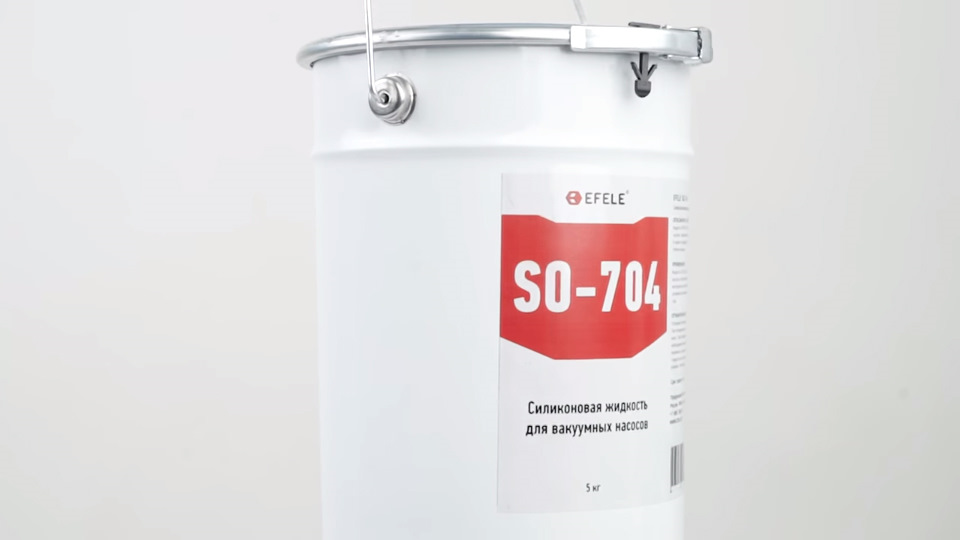 Силиконовая жидкость для диффузионных вакуумных насосов EFELE SO-704 -это бесцветная прозрачная маслянистая жидкость, разработанная для работы в условиях высокого вакуума. Имеет хорошую устойчивость к окислению, низкое давление насыщенных паров, стабильные рабочие характеристики и длительный срок службы. Силиконовое масло 704 в первую очередь предназначено для высоковакуумных диффузионных насосов, которые используются в электронике, металлургии и производстве оборудования. Также может применяться в качестве трансмиссионной жидкости в высокотемпературных ходовых механизмах и различных инструментах.